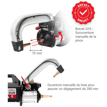 La GYSPOT PTI EXPERT est une soudeuse par point automatique capable d’assembler tous les aciers de la carrosserie d’une voiture. Pour le plus grand confort de son utilisateur, elle est dotée d’une SUROUVERTURE manuelle de la pince et d’une potence avec équilibreur pour réduire le poids de la pince. Refroidie liquide, sa pince à transformateur intégré est orientable à 360° pour faciliter les soudures dans les zones peu accessibles. Son interface couleur est très ergonomique et facile d’utilisation.