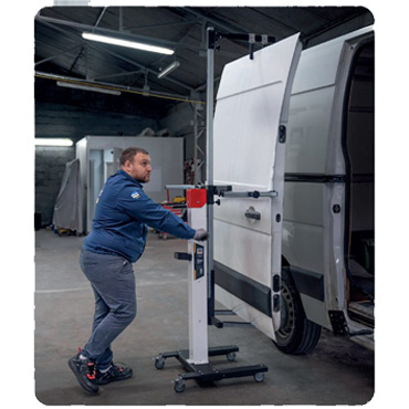 Barre extensible et coulissante sur toute la hauteur du mât pour s’adapter aux portières larges et coulissantes des utilitaires.